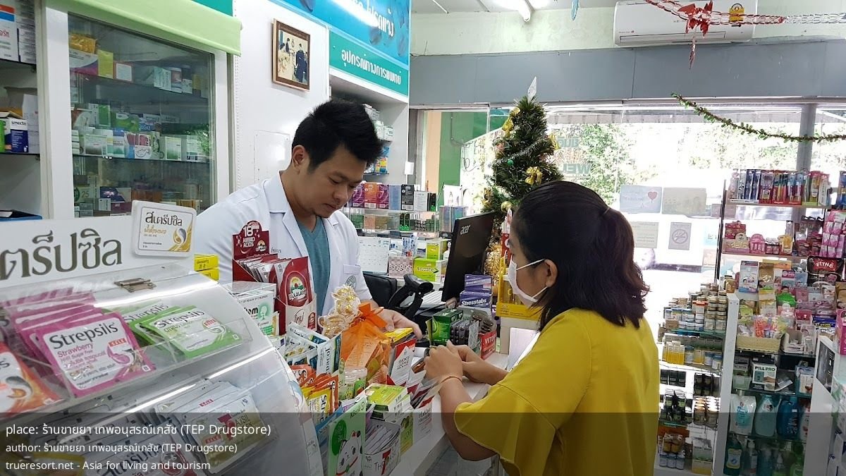 Почему посетители хвалят аптеку ร้านขายยา เทพอนุสรณ์เภสัช TEP Drugstore: полный ассортимент, удобная парковка, доброжелательный персонал и работа до 23:00 ежедневно