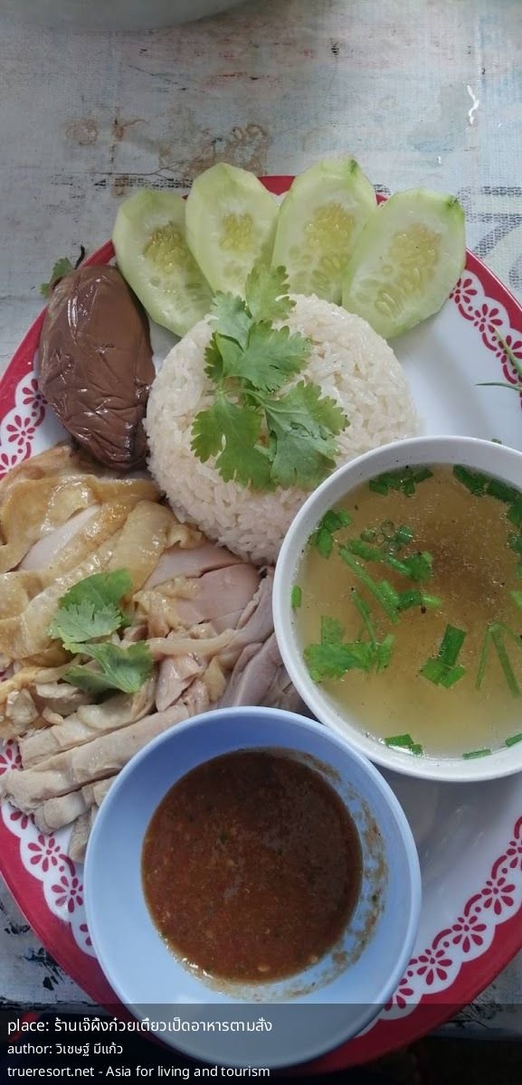 Название заведения уже говорит многое: ร้านเจ๊ผึ้งก๋วยเตี๋ยวเป็ดอาหารตามสั่ง — здесь делают кхуаи тиaо с уткой и блюда по заказу. Рейтинг 4,5 из 5 на основе 11 отзывов наводит на мысль, что для местных вкусов это надёжный вариант, но детали важнее цифр, когда с детьми.