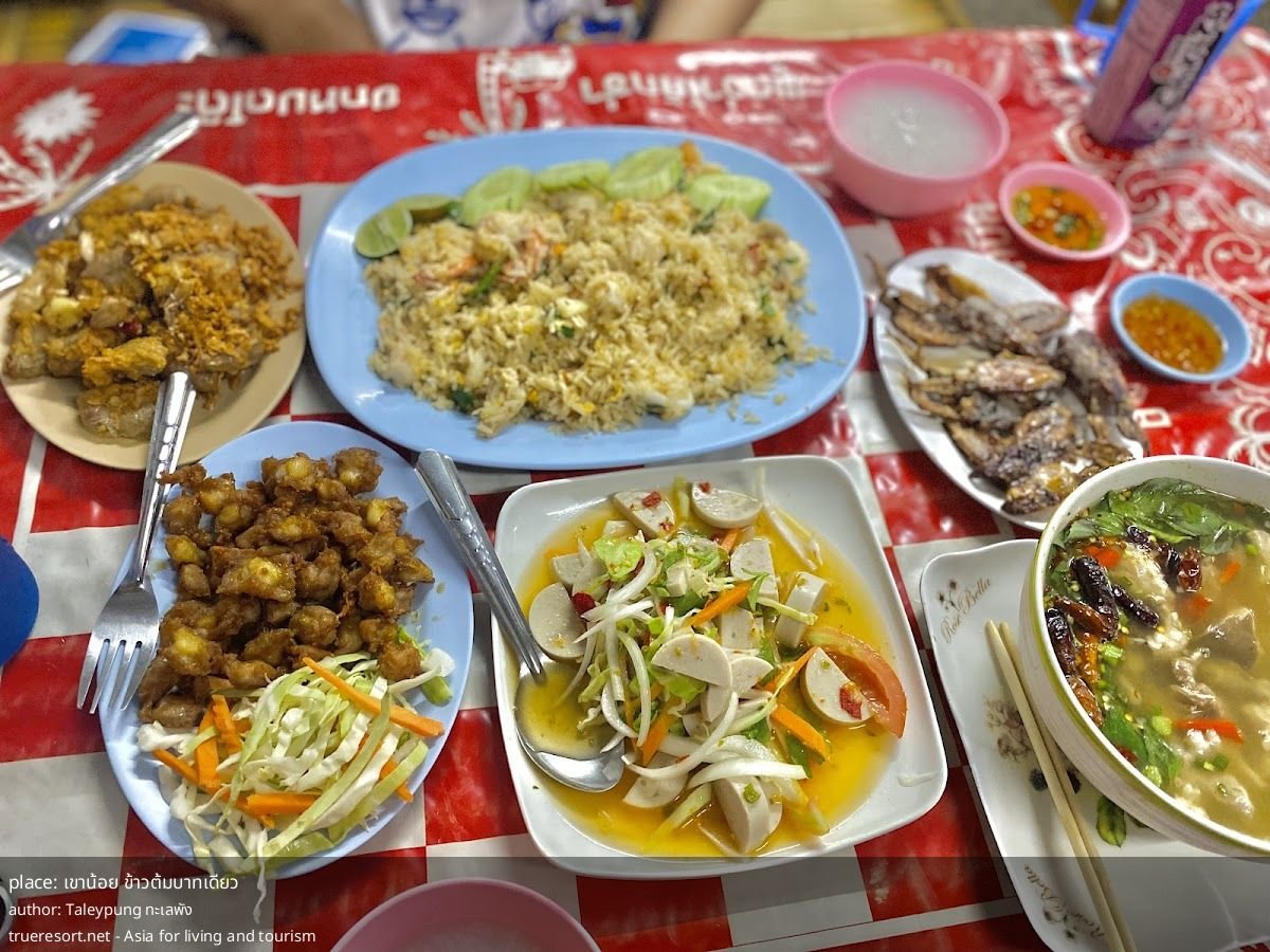 На основании отзывов стоит рассчитывать на щедрые порции и аккуратный вкус: один из гостей прямо отмечает идеальный вкус и хорошую порцию, что делает заведение подходящим для тех, кто хочет плотно поесть без переплат. Из конкретных рекомендаций в отзывах выделяются kraphao Kai и блюда из местных морепродуктов; минимальные цены на некоторые закуски или салаты указаны от 2 бат, что подтверждает позиционирование как бюджетного места для повседневных визитов.Рабочее время, трафик гостей и доступность