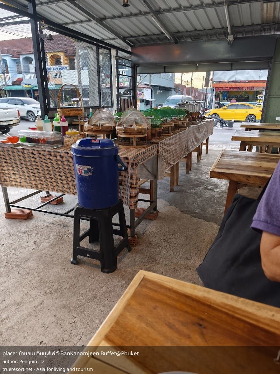 Это ресторан-буфет с традиционными кханом джин — рисовыми лапшами с множеством карри и гарниров. Имя заведения говорит за себя: здесь именно буфет кханом джин, и отзывы с места — единственный источник фактов, с которым приходится работать.