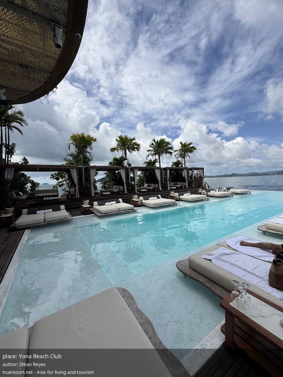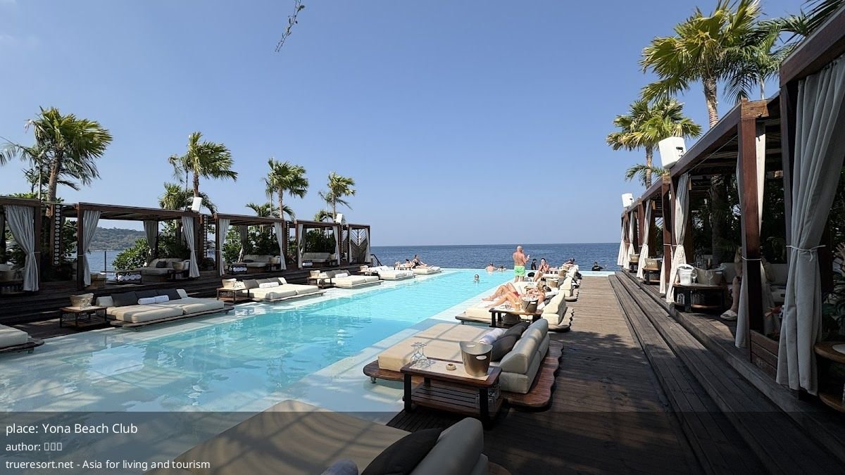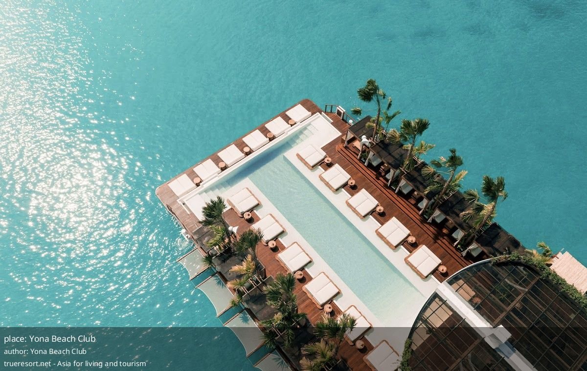 Yona Beach Club имеет оценку 4.7/5 на основе 1852 отзывов и позиционируется как плавучий пляжный клуб, до которого добираются на небольшой лодке.