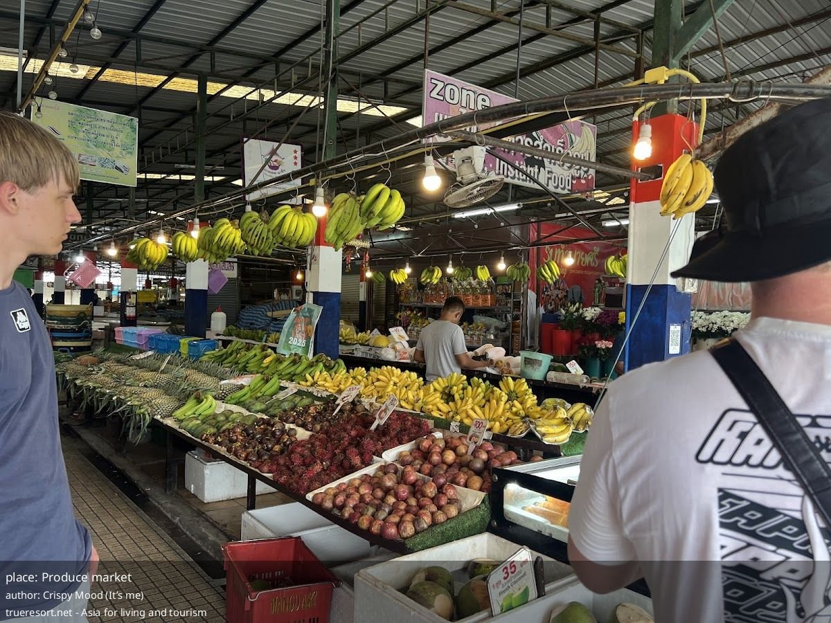 Гости оставили конкретные ценовые примеры: кокос 20 бат, крупные креветки 1 кг — 300–320 бат, fry-креветки 1 кг — 150 бат, том-ям с морепродуктами — 150 бат, манго Nam Dok Mai — 80–100 бат, обычное манго — 40–60 бат, маракуйя — 70 бат, авокадо — 100–120 бат. Один отзыв прямо рекомендует активно торговаться, обещая скидки.