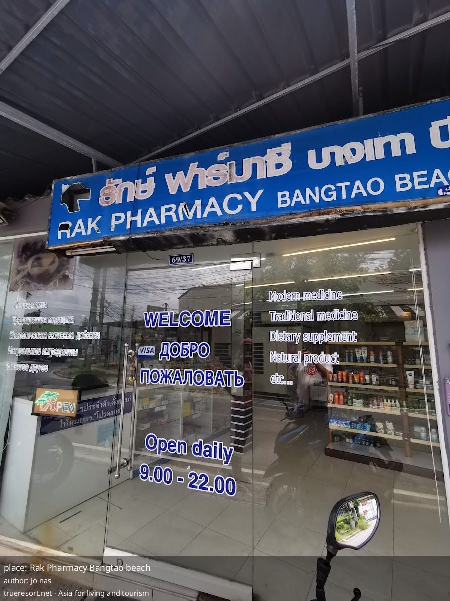 Rak Pharmacy Bangtao beach — аптека у пляжа с большим ассортиментом, приемлемыми ценами и отзывчивым персоналом, который быстро подберёт нужные лекарства