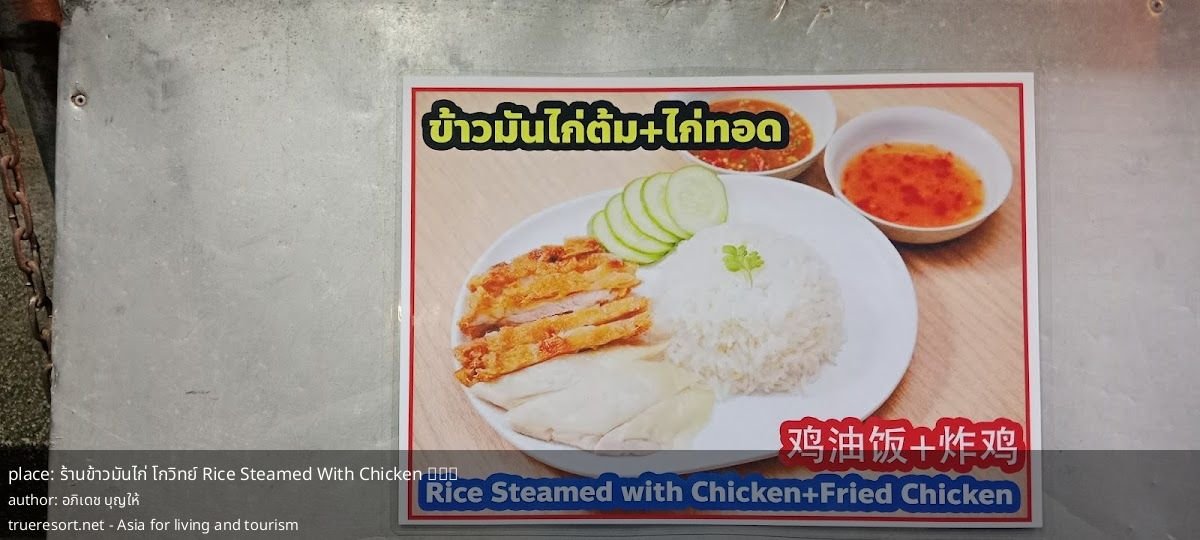 - Название заведения: ร้านข้าวมันไก่ โกวิทย์ Rice Steamed With Chicken 鸡油饭; это ресторан.
