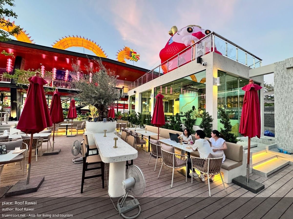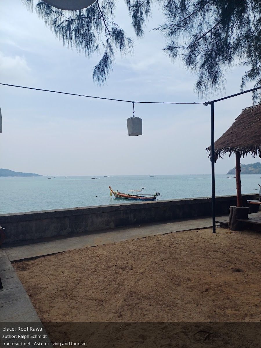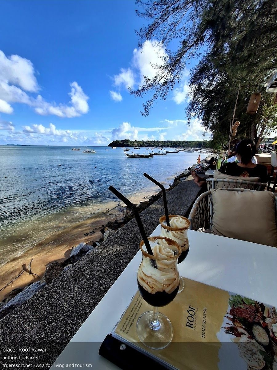 Roof Rawai стоит прямо перед пляжем Rawai и даёт вид на море — причина прийти не только за едой. Для транспорта проблем нет: есть бесплатная парковка на стоянке и возможность бесплатной парковки на улице. Интерьер и обслуживание продуманы с доступностью в виду — имеются туалет и посадочные места, приспособленные для колясок.