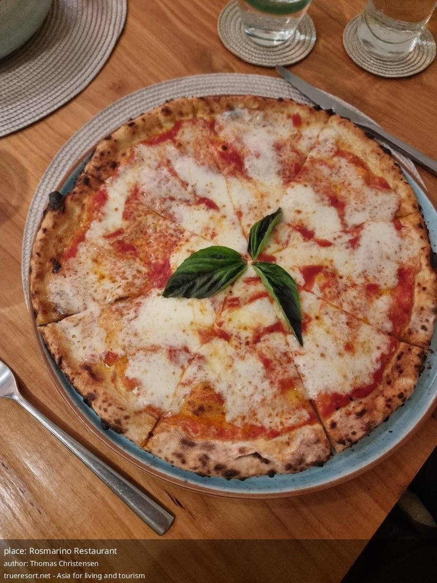 Отзывы отмечают выдающиеся пасты; один автор прямо называет их лучшими в районе. Пицца с сыром получает восторженные отклики, а необычная пицца с фисташками и тирамису у нескольких гостей отмечены как эталонные в Азии. Тирамису описывают как лёгкое и воздушное — десерт, который завершает вечер на высокой ноте. Также отмечено наличие достаточного числа вегетарианских опций, если вы не едите мясо.