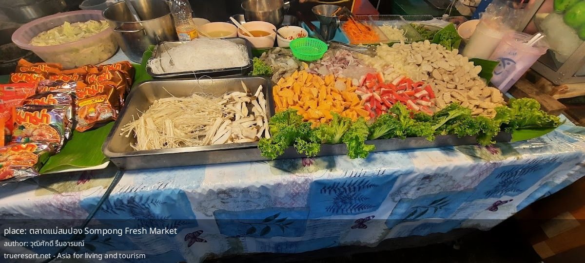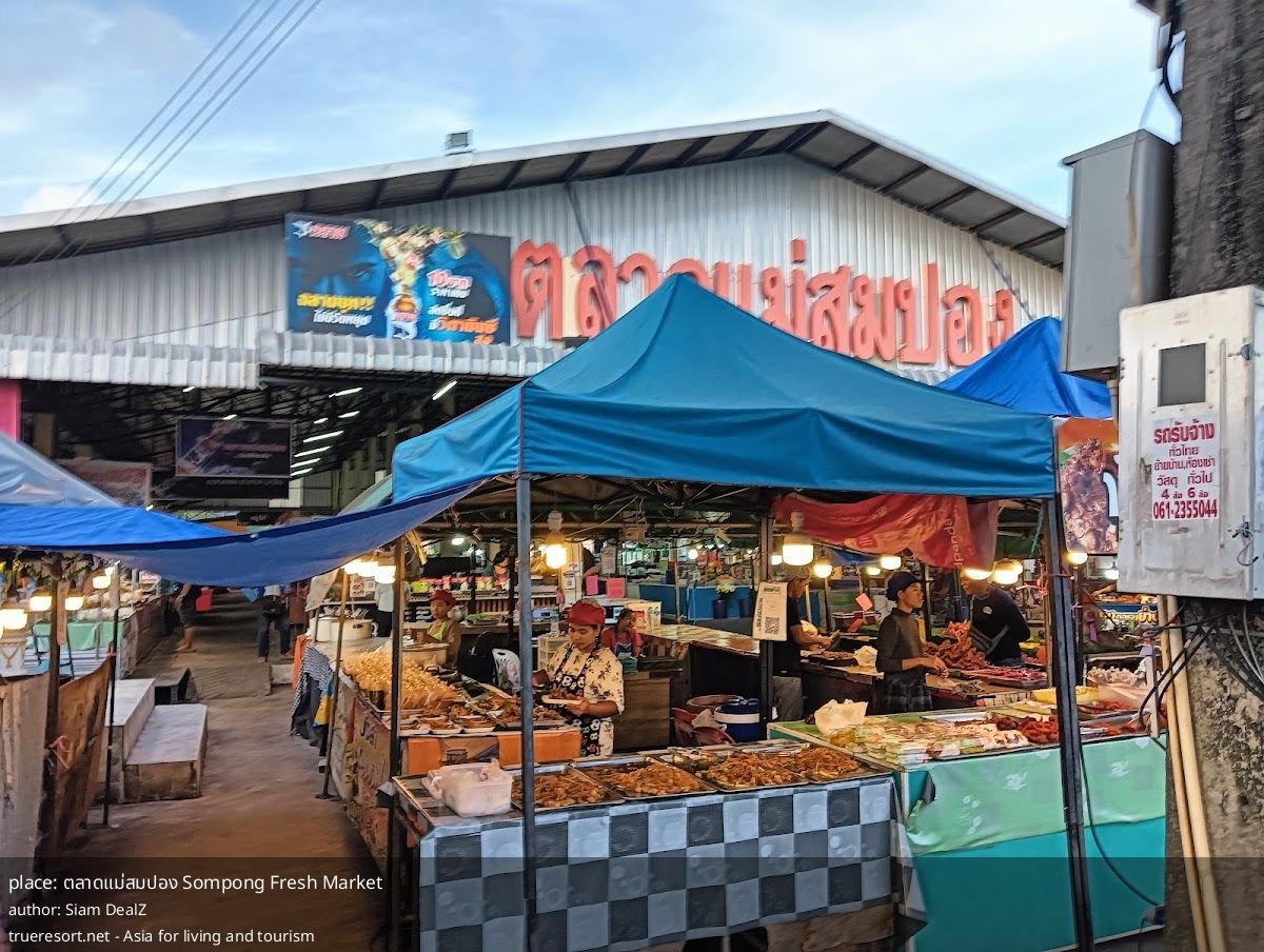 Рынок ตลาดแม่สมปอง Sompong Fresh Market — вечерний оазис аутентичной тайской уличной еды с большим выбором, разумными ценами, свежими продуктами и парковкой