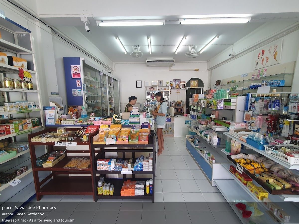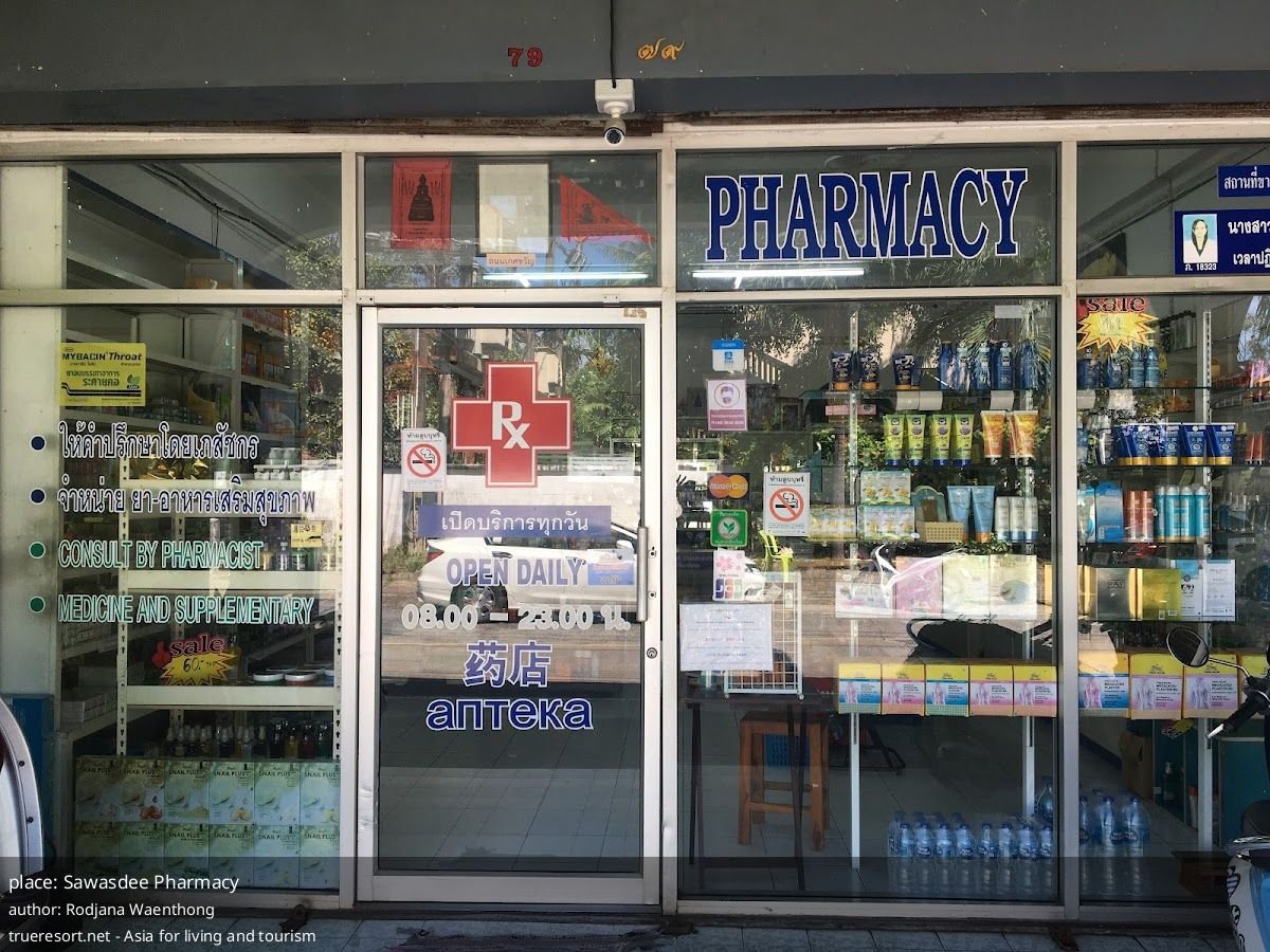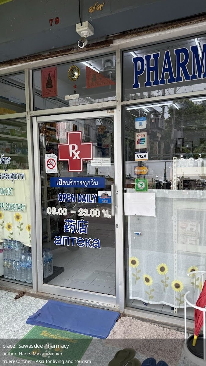 Sawasdee Pharmacy — дружелюбные англоговорящие фармацевты, помощь при травмах и детям, разумные цены, работа ежедневно с 9:00 до 23:00