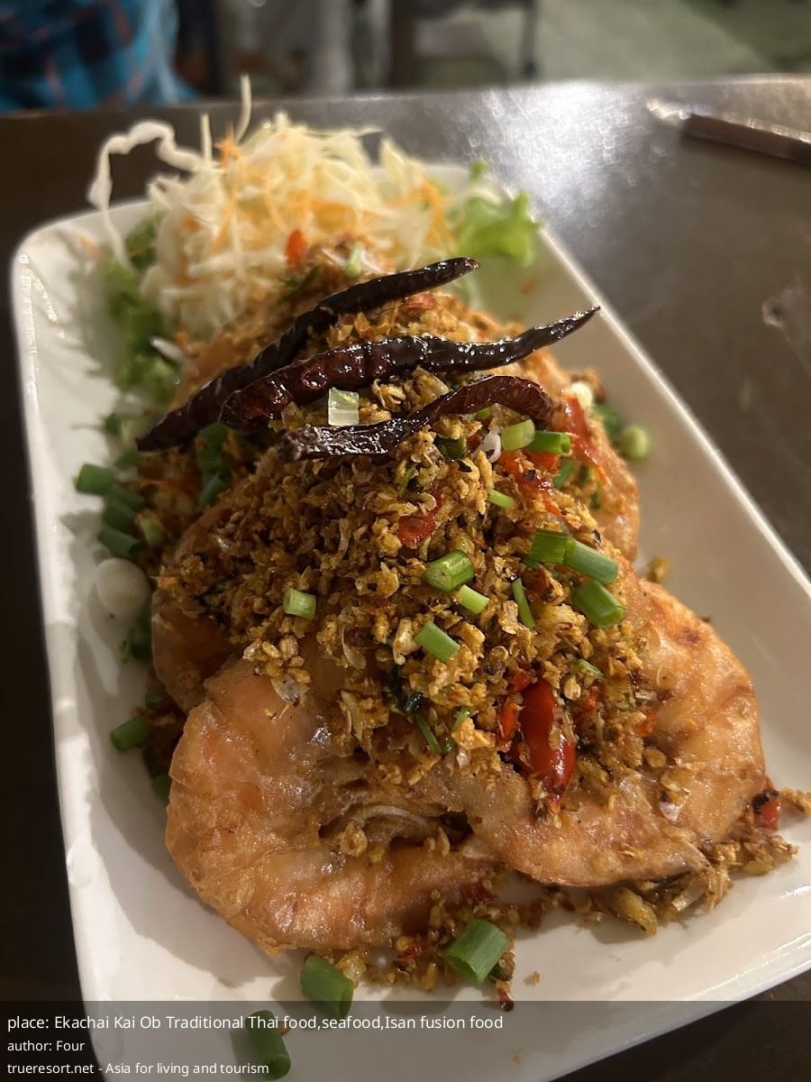 Несмотря на формулировку Traditional Thai food, seafood, Isan fusion, кухня не ограничена одной нишей: здесь готовят южные, центральные и северо‑восточные (Isan) блюда. Это значит, что вы не получите ресторанного «сета» из одного направления — получите широкий домашний набор вкусов, где исанская острота соседствует с морепродуктами.