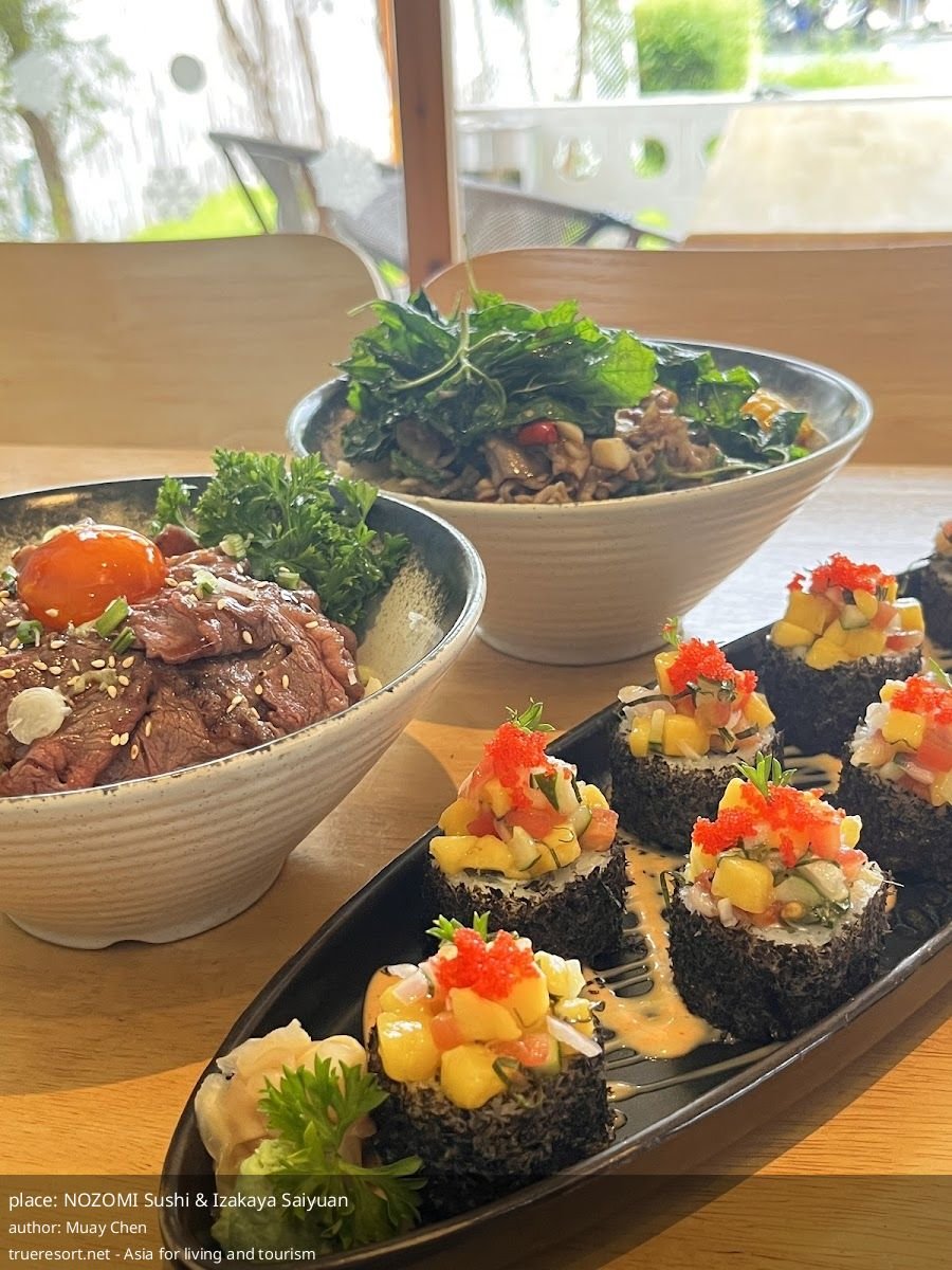 - Тип заведения: restaurant, название NOZOMI Sushi & Izakaya Saiyuan.