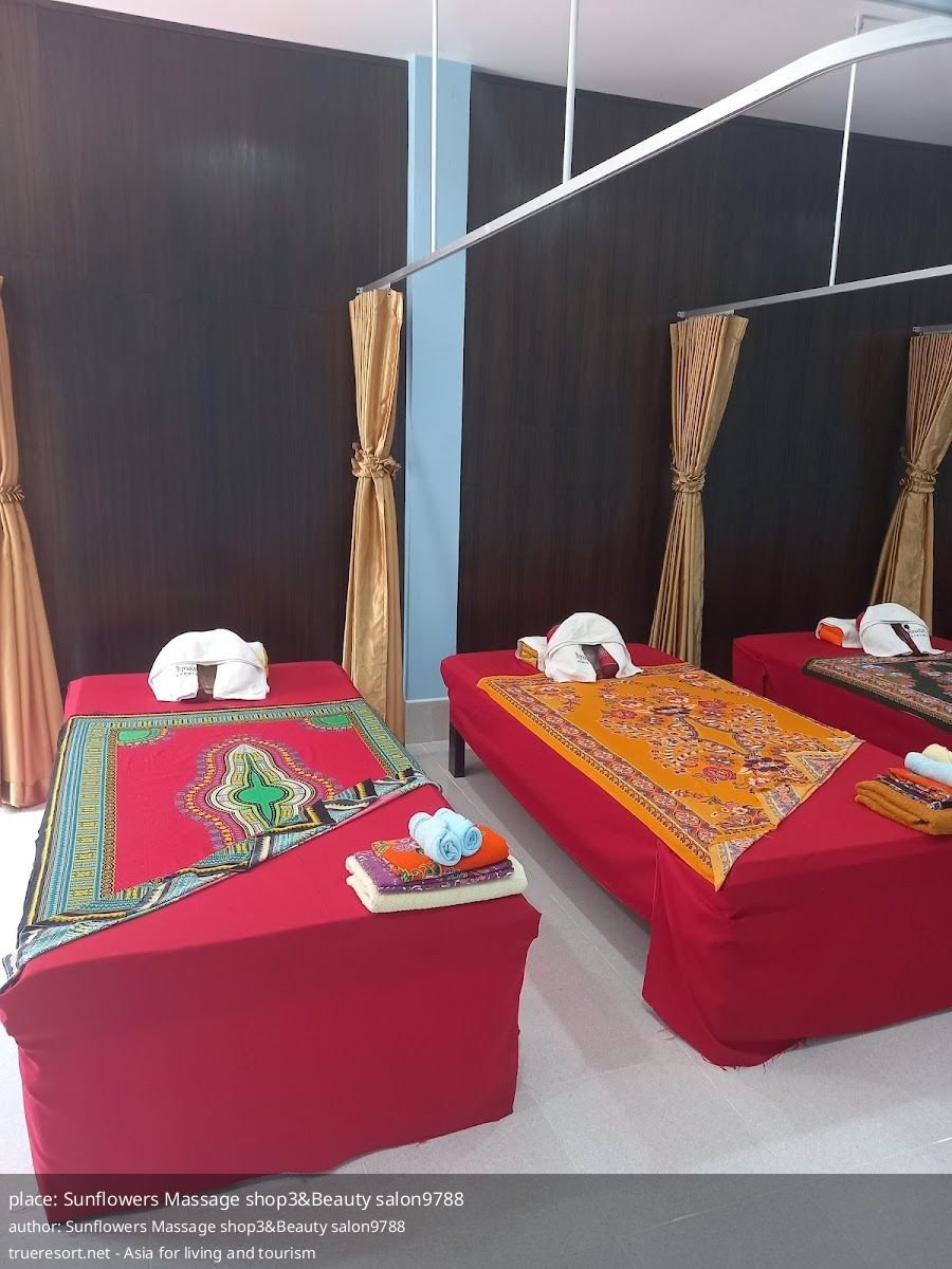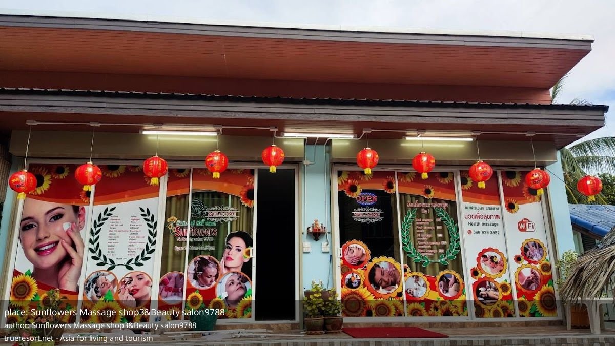 Sunflowers расположен в окружении торговых точек и сервисов, среди которых Somtawin Beach Shop и несколько прокатных контор, что делает его удобным для туристов, приезжающих в район Пхукета и желающих совместить аренду авто с визитом в массажный салон.