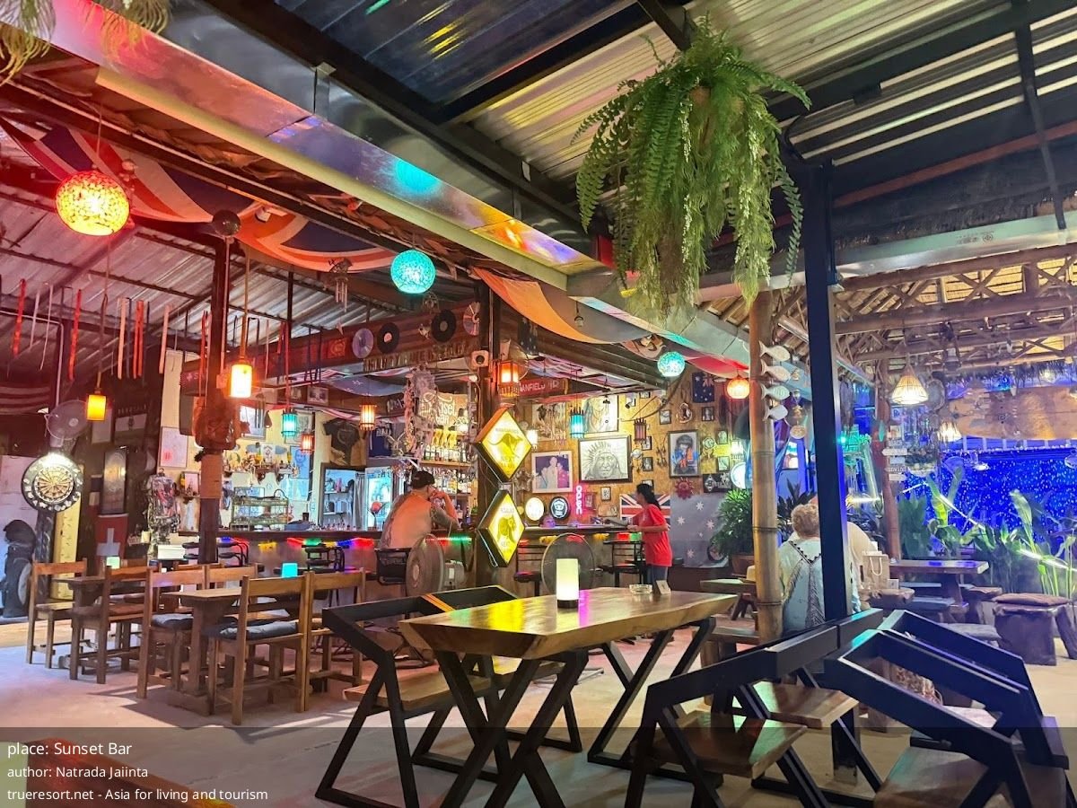 Если вы ищете атмосферное место с эклектичным декором, быстрыми тайскими блюдами и крепкими коктейлями — Sunset Bar подходит вам. Подойдёт парам и небольшим компаниям, которые ценят расслабленную, чуть хиппи-атмосферу и хотят сочетать еду с настольными развлечениями.