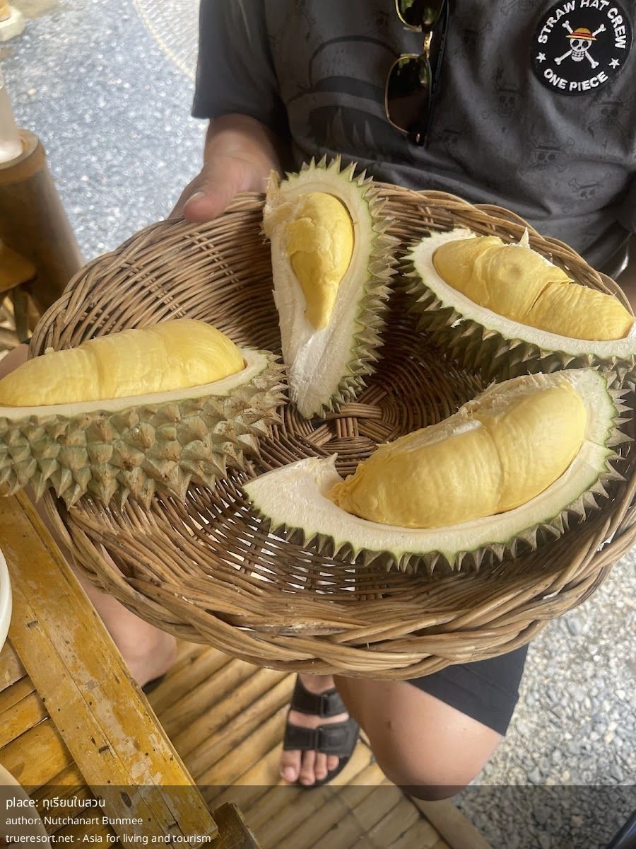 Коротко и резко: это ресторан, сфокусированный на дуриане, который в данных проявляет себя как любимое место для повторных визитов и семейного отдыха. Название учреждения — ทุเรียนในสวน.