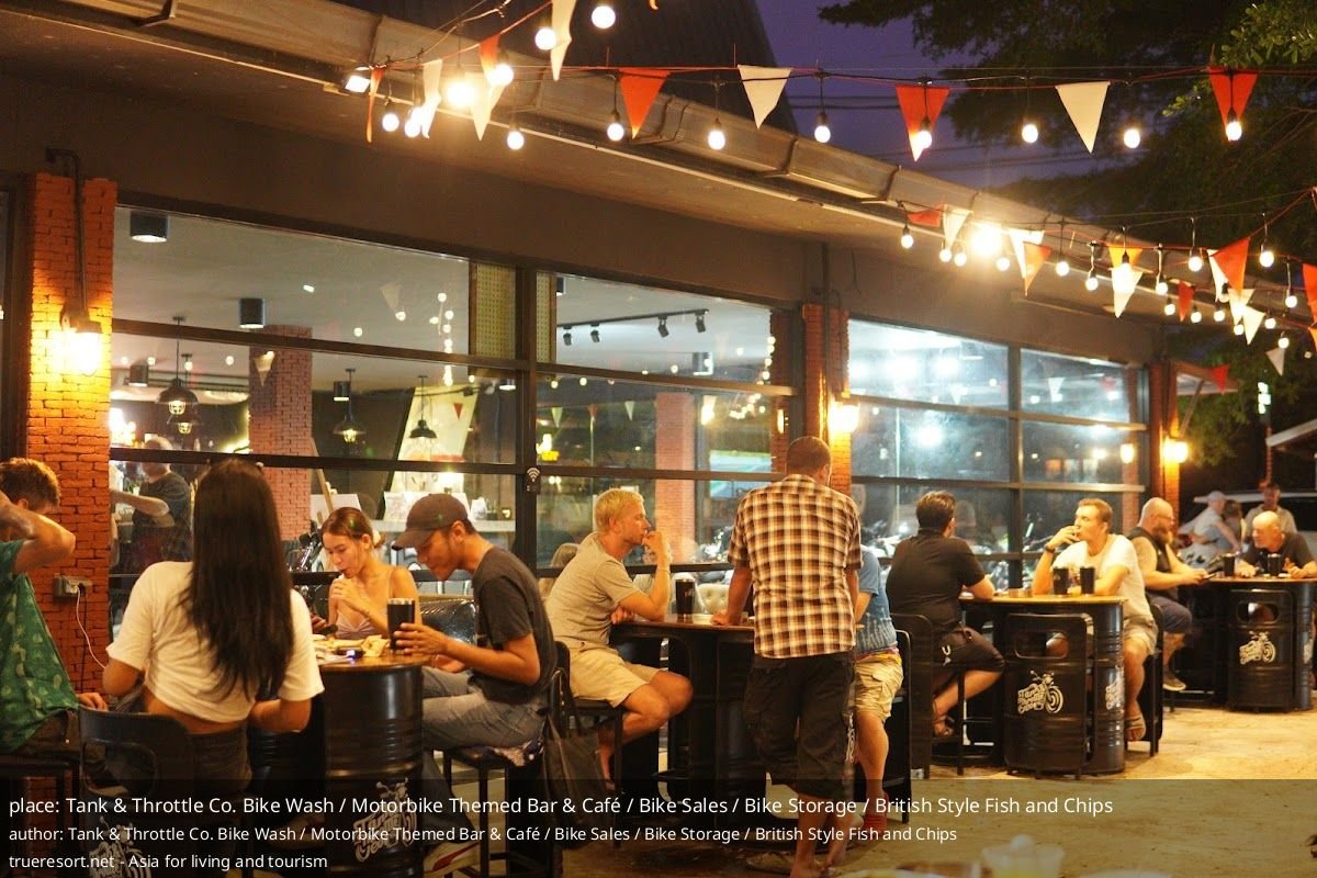 Этот моторбайк-ориентированный заведение получает оценку 5/5 на основе 212 отзывов и позиционируется как бар‑кафе, пункт мойки и хранения байков, а также шоу‑рум с тематикой мотоциклов и британской кухней.