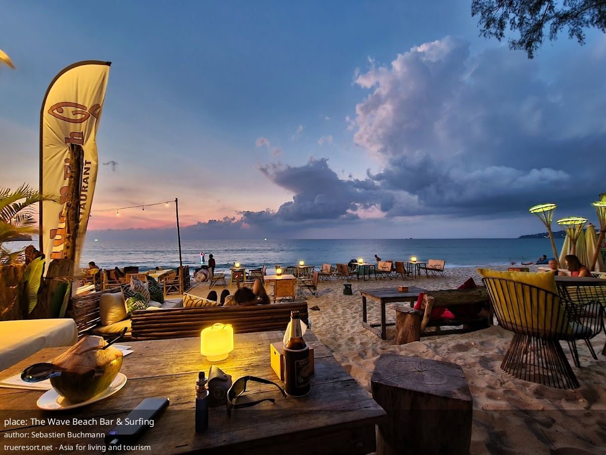 The Wave Beach Bar & Surfing — идеальное пляжное убежище, чтобы забыть о суете: смотреть волны и закаты под чилл‑музыку с холодным пивом и уютом