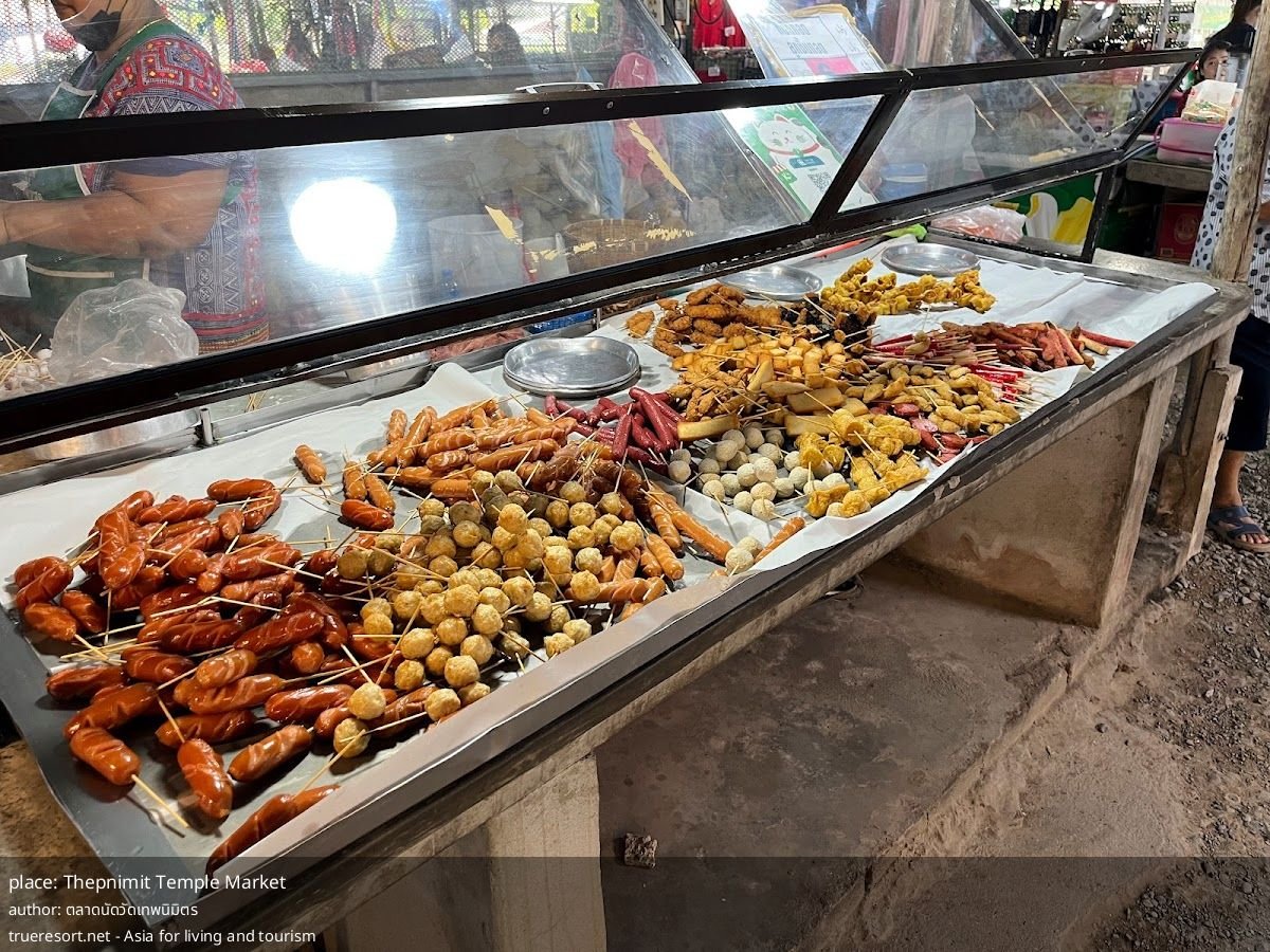 Thepnimit Temple Market работает вечерами только в определённые дни: вторник, четверг, пятница и воскресенье с 14:00 до 20:00. Отзывы посетителей сходятся на одном: это рынок для тех, кто ищет жизнь местного сообщества, недорогую еду и традиционные продукты — не для любителей глянца и туристических развлечений.