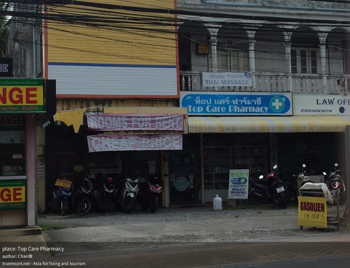 - Аптека расположена в окружении сервисов и объектов, связанных с туристической зоной Patong (на основании контекста рядом расположенных клиник, массажных и ресторанных заведений).