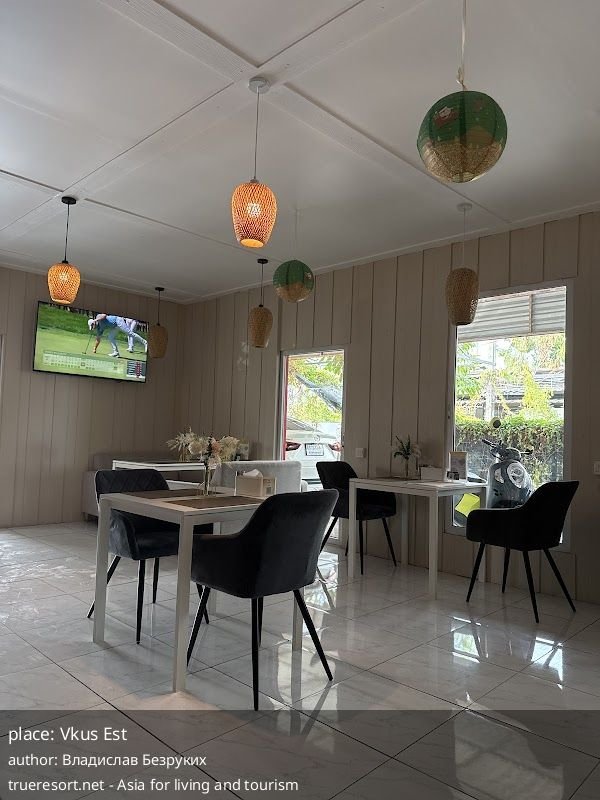 Окружающая инфраструктура включает мини-маркет и несколько кафе; это даёт два простых приема экономии: докупить недорогие закуски в ближайшем магазине вместо покупки дополнительных порций в ресторане, или завершить обед в соседнем кафе, если хочется десерт дешевле, чем в меню Vkus Est.