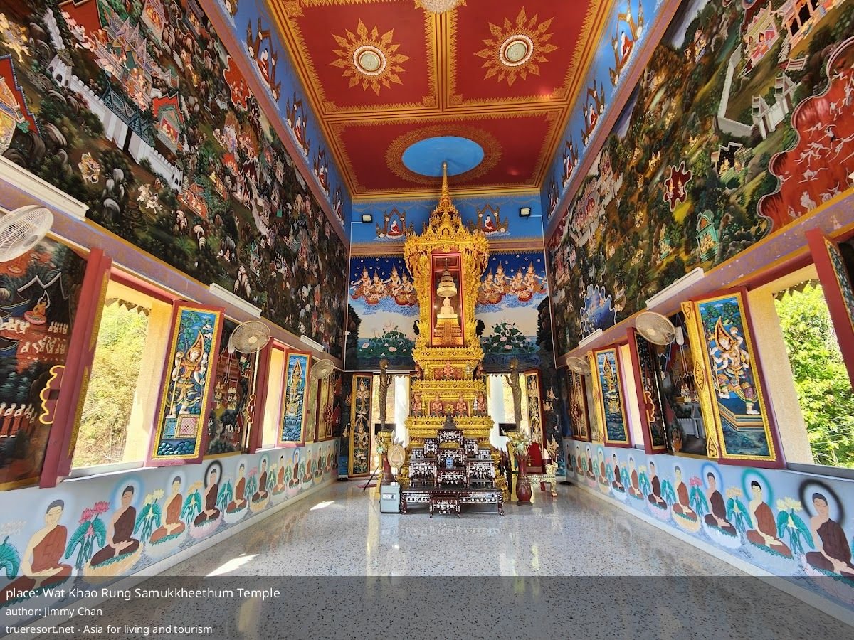 Wat Khao Rung Samukkheethum Temple в Старом Пхукете — тихий малолюдный духовный оазис с внушительным золотым Буддой и впечатляющими золотыми фресками