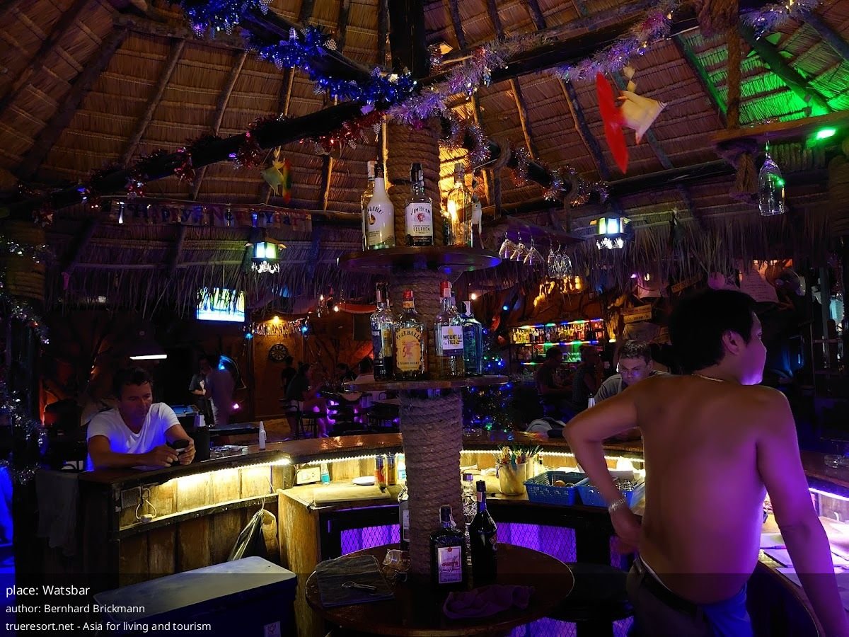 Watsbar в Най Ян, Пхукет — бар, где владелец Ват превращает каждый вечер в душевную тусовку: холодное пиво, коктейли и бильярдная атмосфера