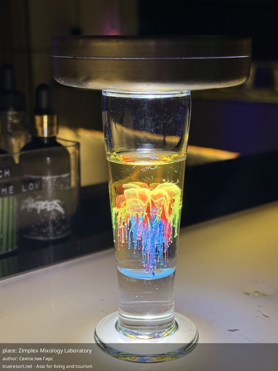 Zimplex Mixology Laboratory в Старом городе предлагает театральные шоты как произведение искусства — экспериментальная подача превращает выпивку в живое представление